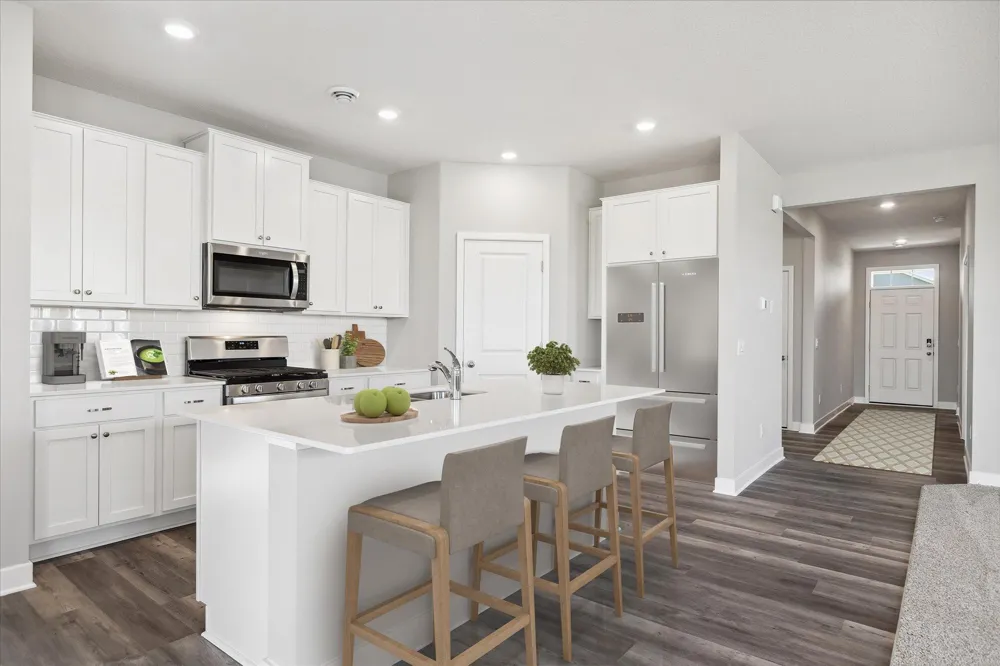 Ask how you can receive a 4.99% Government or 5.50% Conventional 30 yr fixed rate mortgage PLUS up to $5,000 in closing costs on this home! Welcome home to the Clayton with all living spaces on main floor! All the luxuries of new construction tucked into a smartly designed one-level living plan with an expansive 3-car garage! Open and inviting floor plan with 3 bedrooms including a primary suite with private bath and huge walk-in closet, great entertaining spaces including a covered patio right off the dining space. Large quartz kitchen island with stainless steel appliances and pantry. The Clayton is an exceptional plan with plenty of windows, open concept design and covered back patio. All of our homes include Smart Home Technology. Welcome to Brookshire, our flagship D.R. Horton neighborhood offering resort-style amenities, walking-distance access to the serene trail systems of East Lake Park, all in a prime Lakeville location. The clubhouse includes a swimming pool, fully equipped gym, party area, and more. Photos are of similar and model homes.